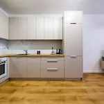 - ❓Czy w tym apartamencie znajduje się kuchnia do użytku gości?Tak, apartament wyposażony jest w pełnowymiarową kuchnię i oferuje czajnik elektryczny, lodówkę i przybory kuchenne.